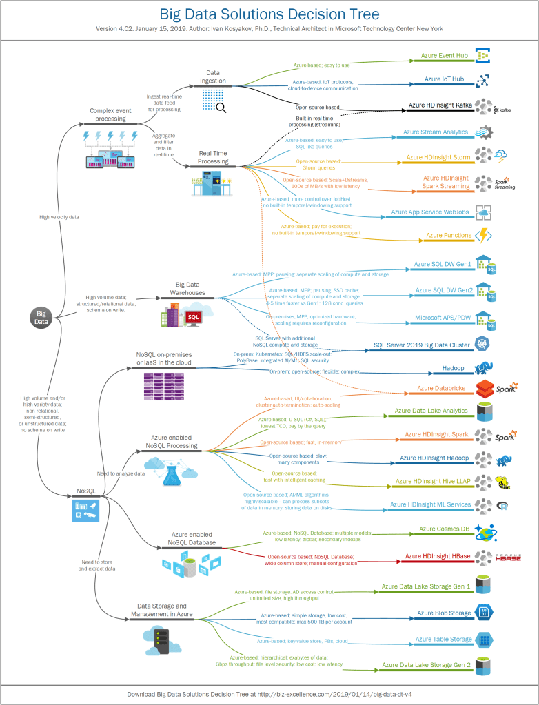 This is a 4th version of the Big Data Decision Tree (Mind Map), which reflects the last changes in Microsoft products.