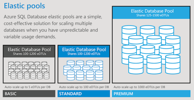 - SQL Database elastic database pool feature allows all databases in the pool share the same set of compute and storage resources. Each database can use the resources it needs, within defined limits, depending on current load.