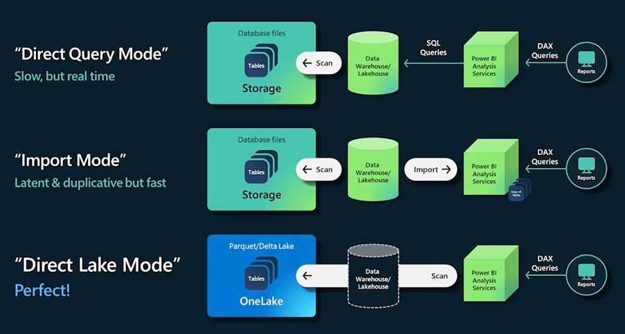 Direct Lake mode in Power BI allows read Delta tables directly from the OneLake with the similar performance of Import mode but without having to copy them. When Delta tables are updated in the OneLake, the changes are automatically reflected in corresponding Power BI reports.