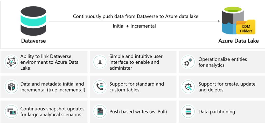 Usage with Dataverse: The Azure Synapse Link service enables continuous replication of Dataverse table data to either an Azure Data Lake Storage Gen 2 account or an Azure Synapse Workspace. You can then use it to run analytics such as Power BI reporting, Microsoft Azure Machine Learning, Data Warehousing, and other integration scenarios.